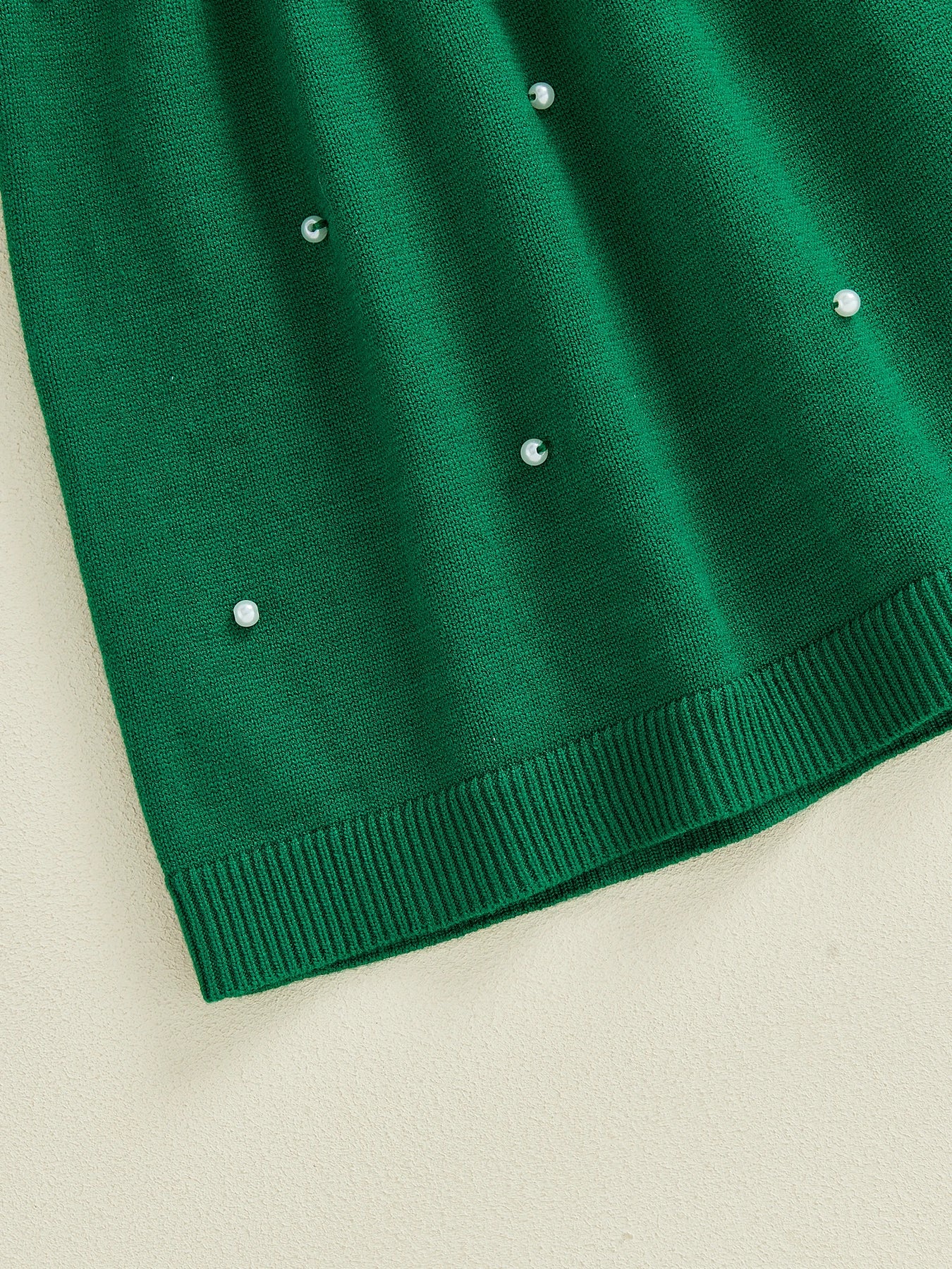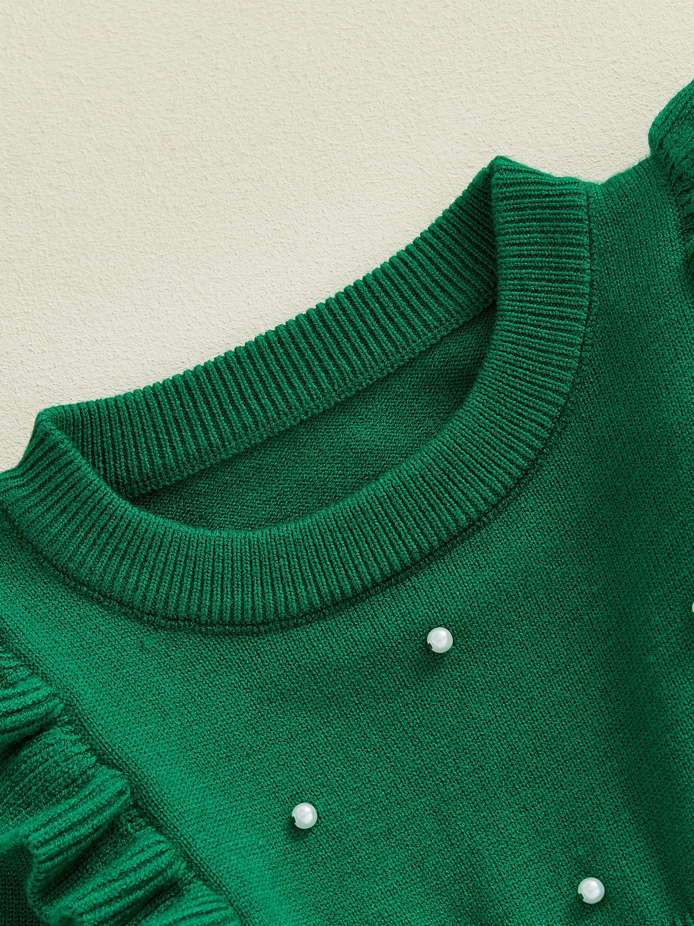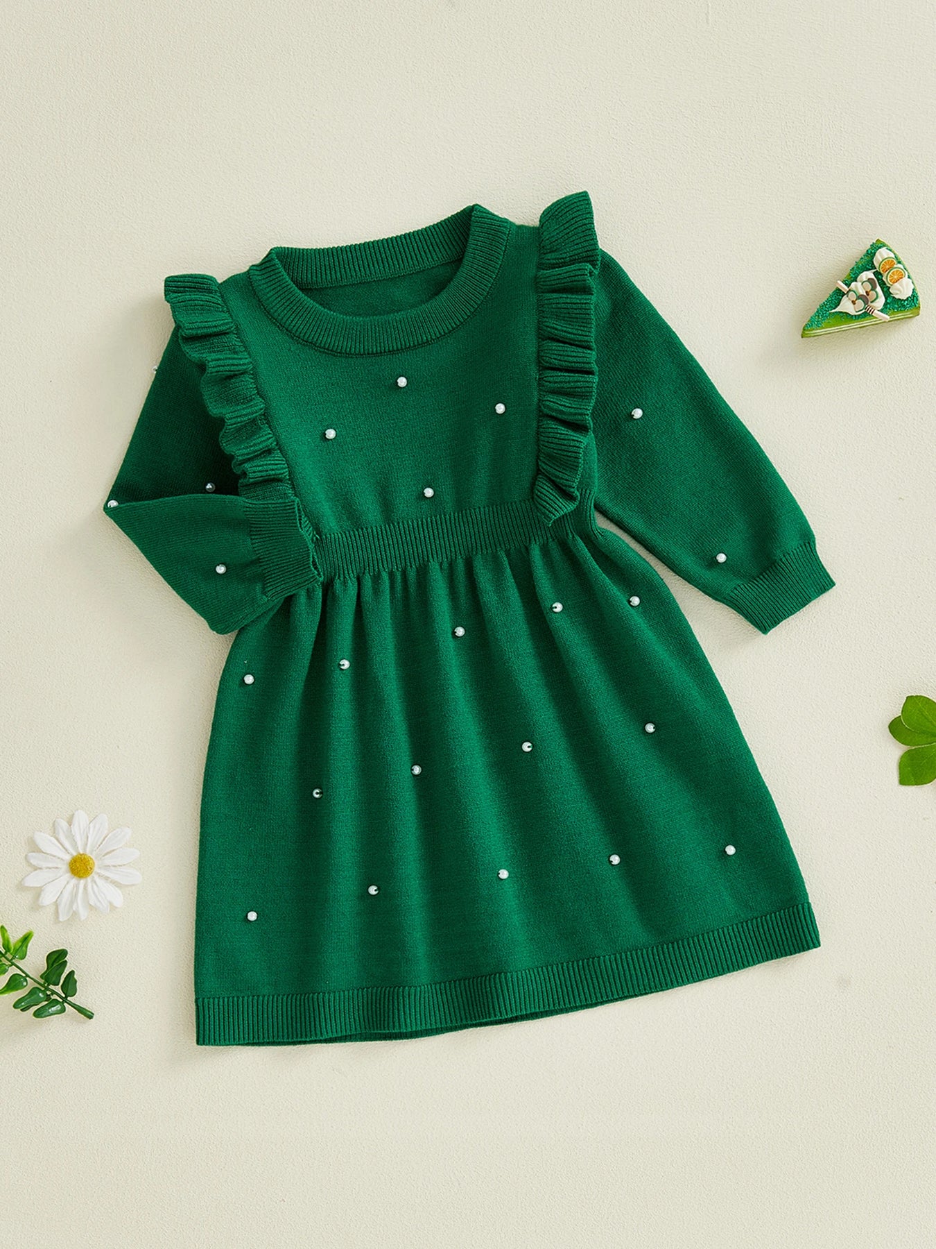 Dzianinowa sukienka dziewczęca z perełkami i falbankami