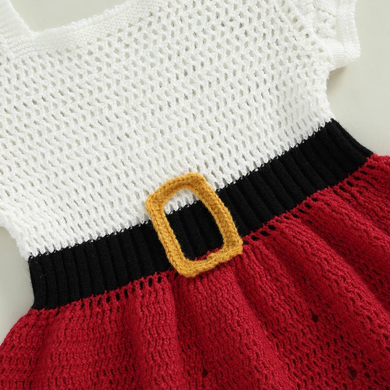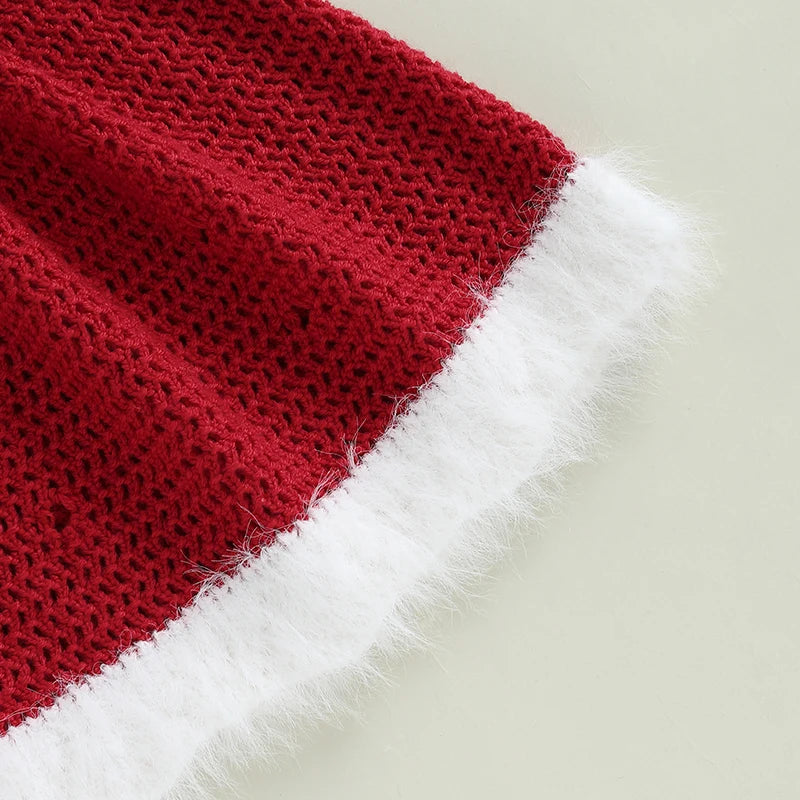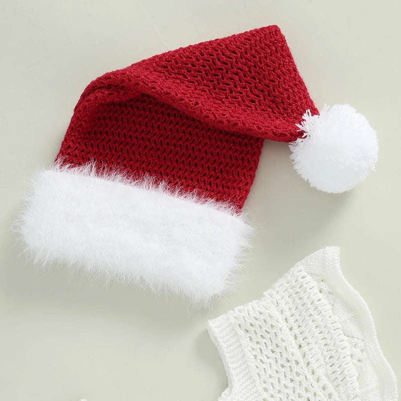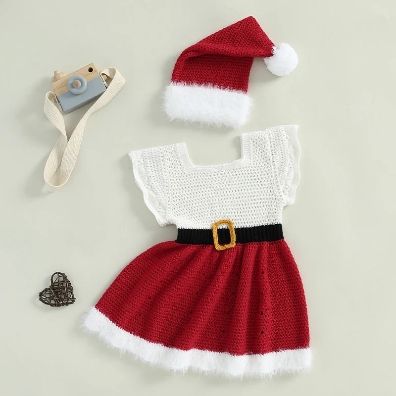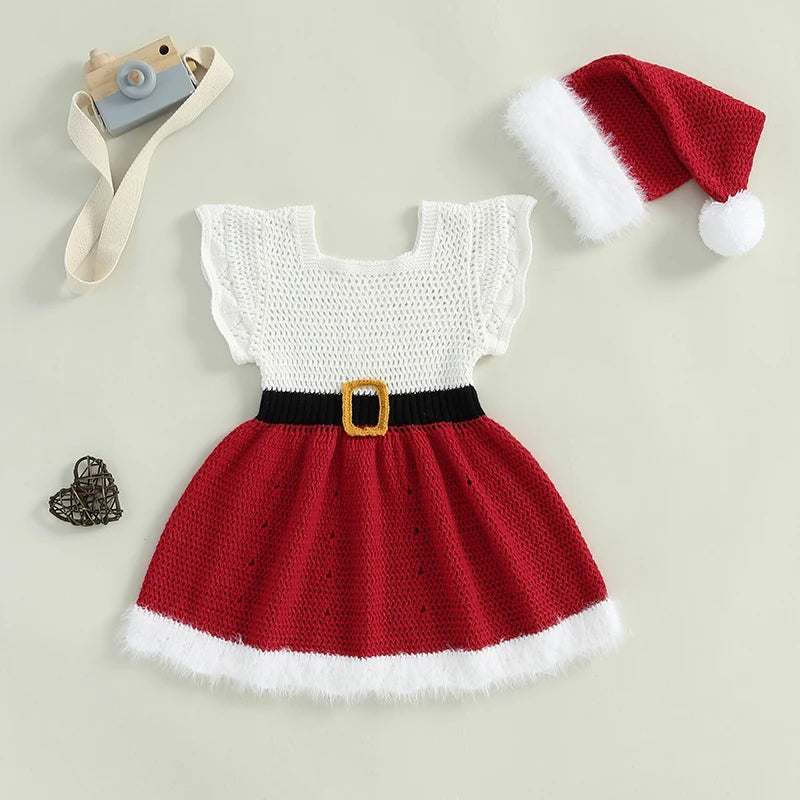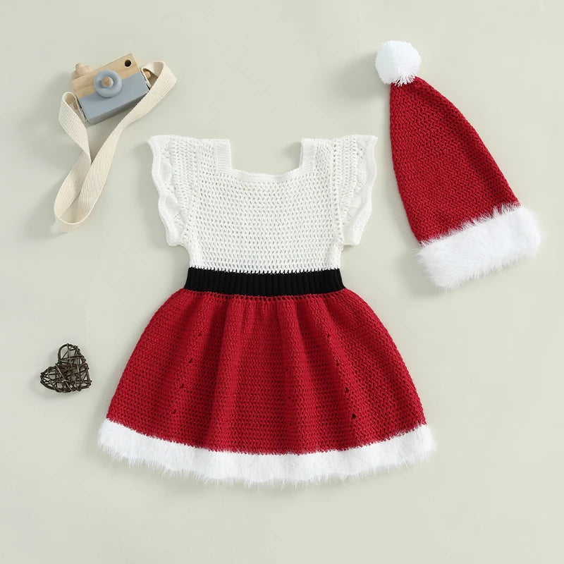 Dziewczęca sukienka świąteczna z dzianiny z czapeczką