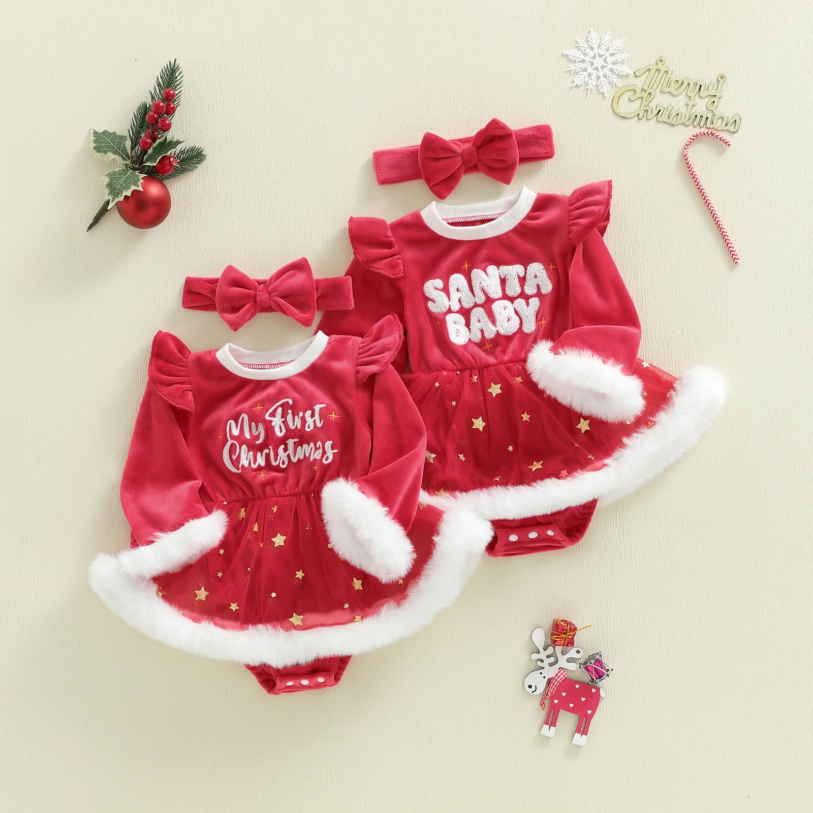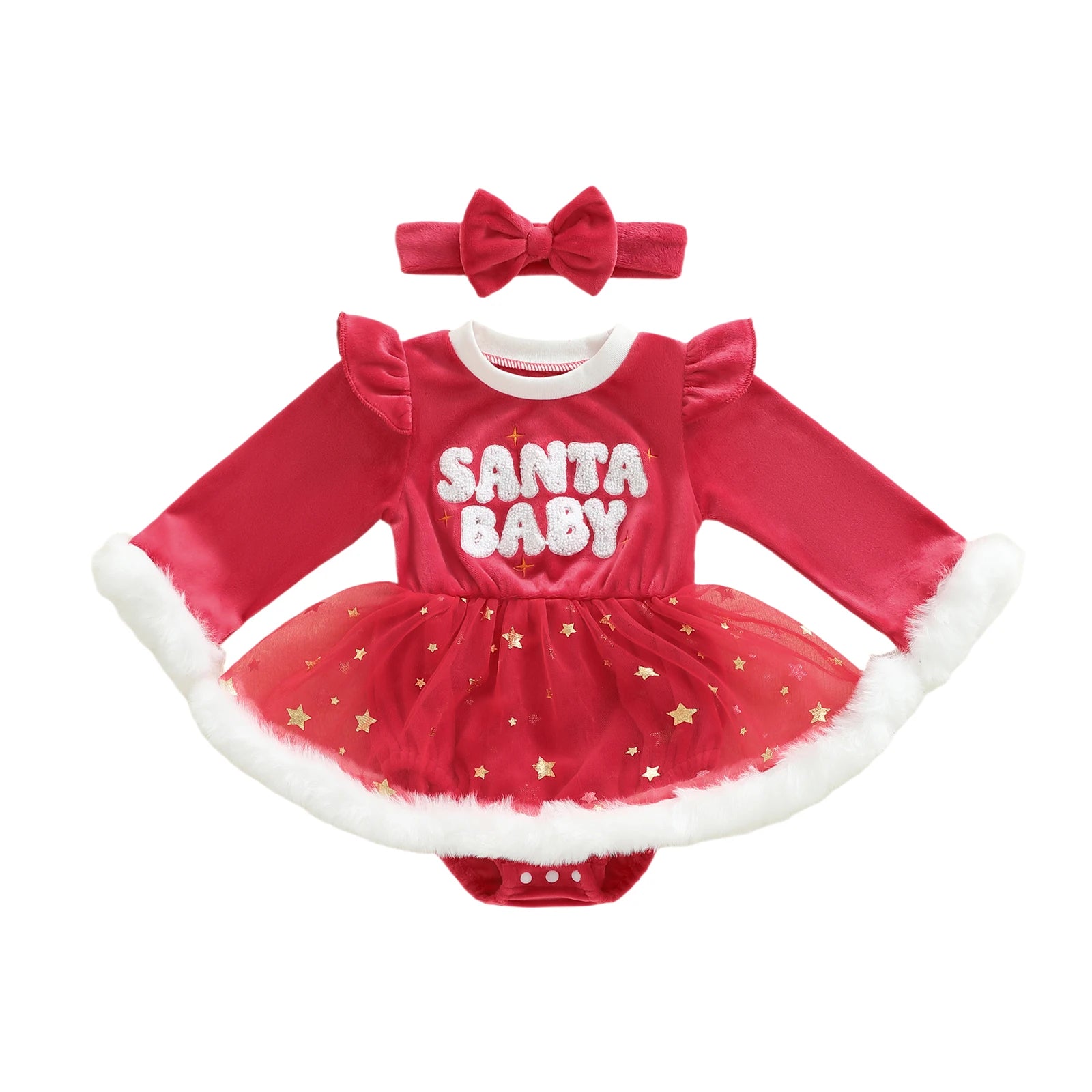 Niemowlęce body świąteczne z sztucznym futerkiem i opaską