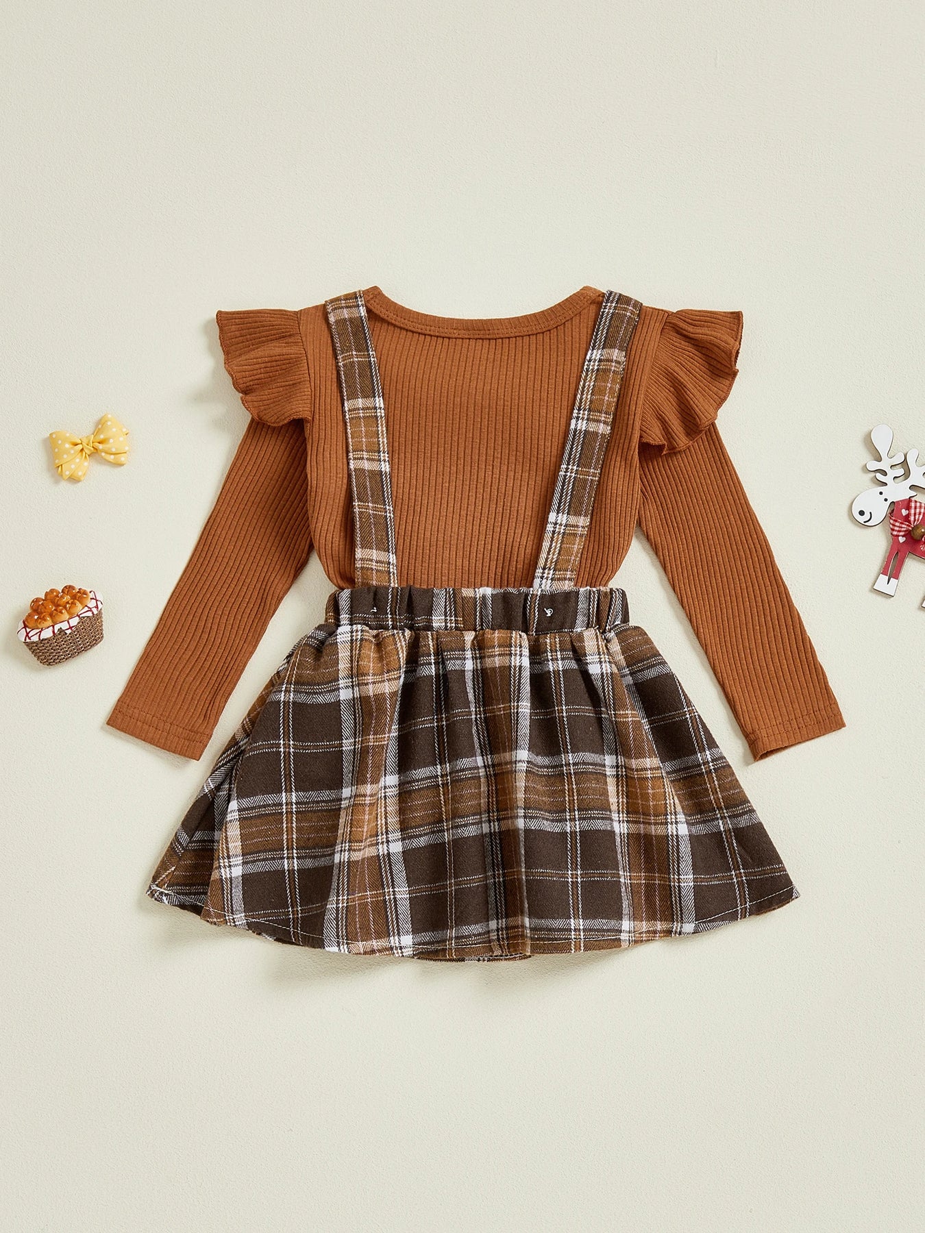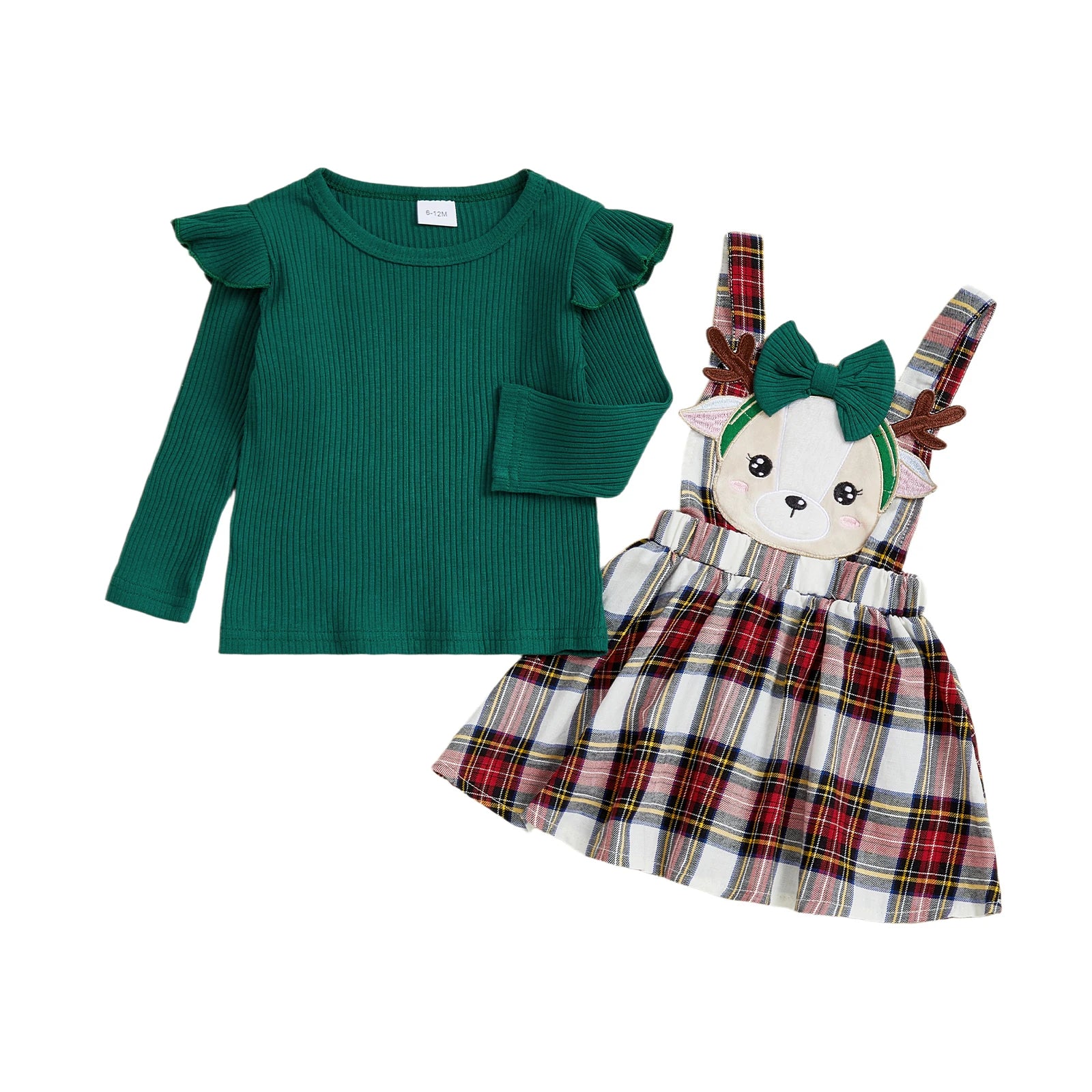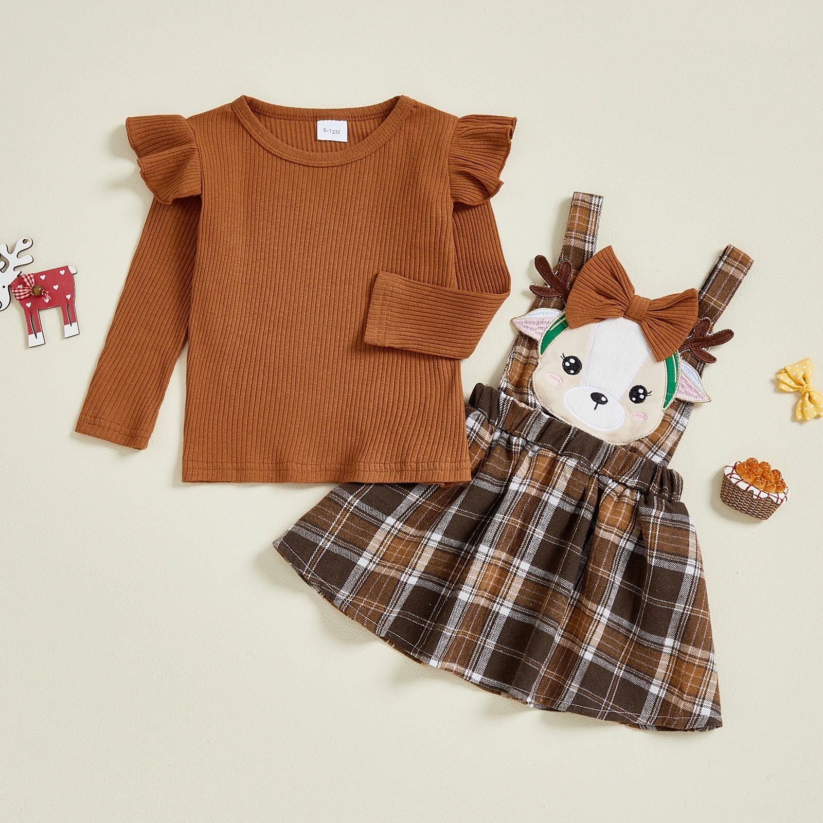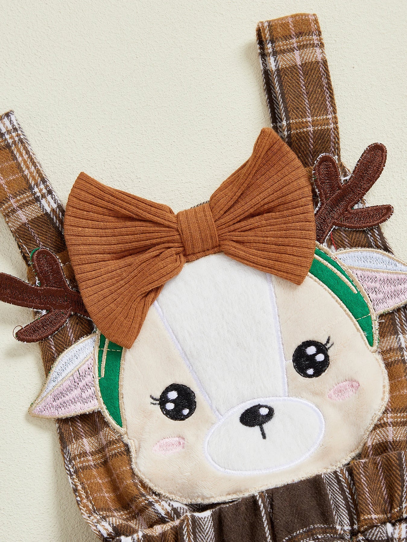 Świąteczna sukienka dziewczęca w kratę z reniferkiem